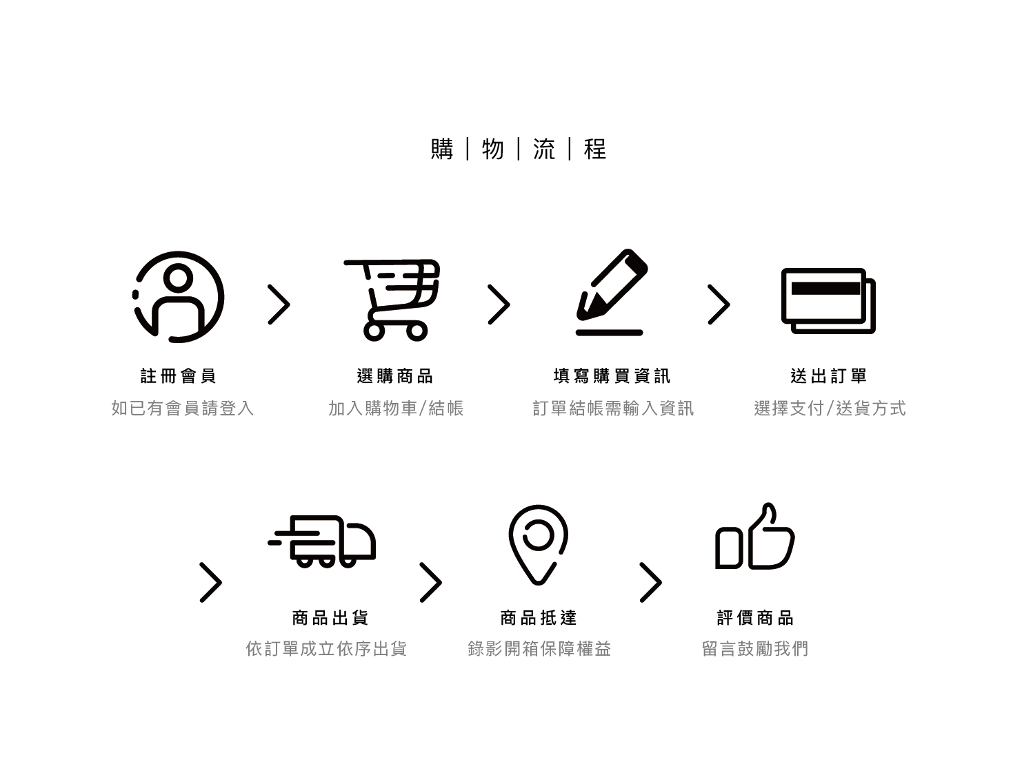2. 請務必填寫正確且完整之送貨地址,下單前再三確認收件資料,以利貨品能快速送達。