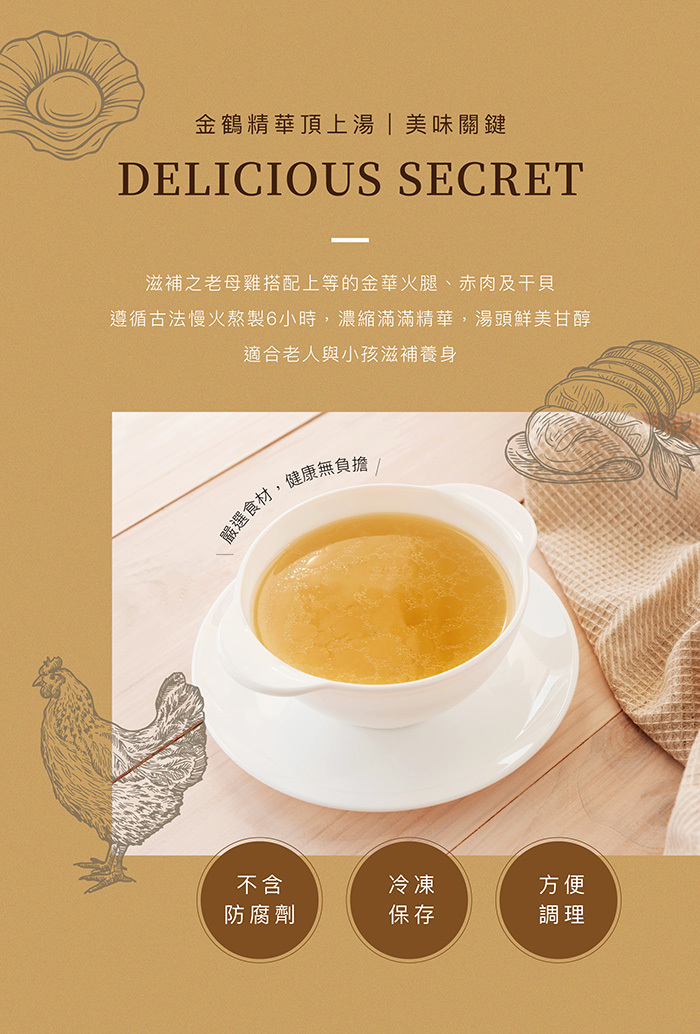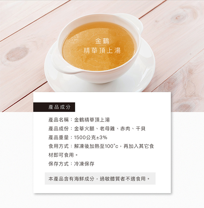 成分:金華火腿、老雞、赤肉、天然香辛料等熬炖。