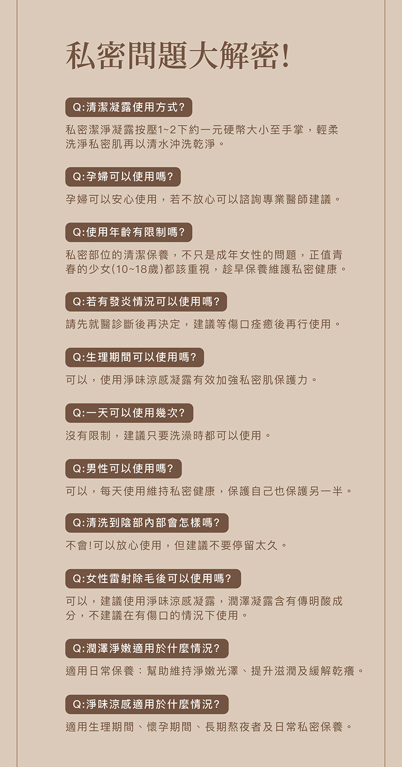 使用方法:擠適量於手掌心,輕搓洗私密肌外陰部後以清水洗淨即可。
