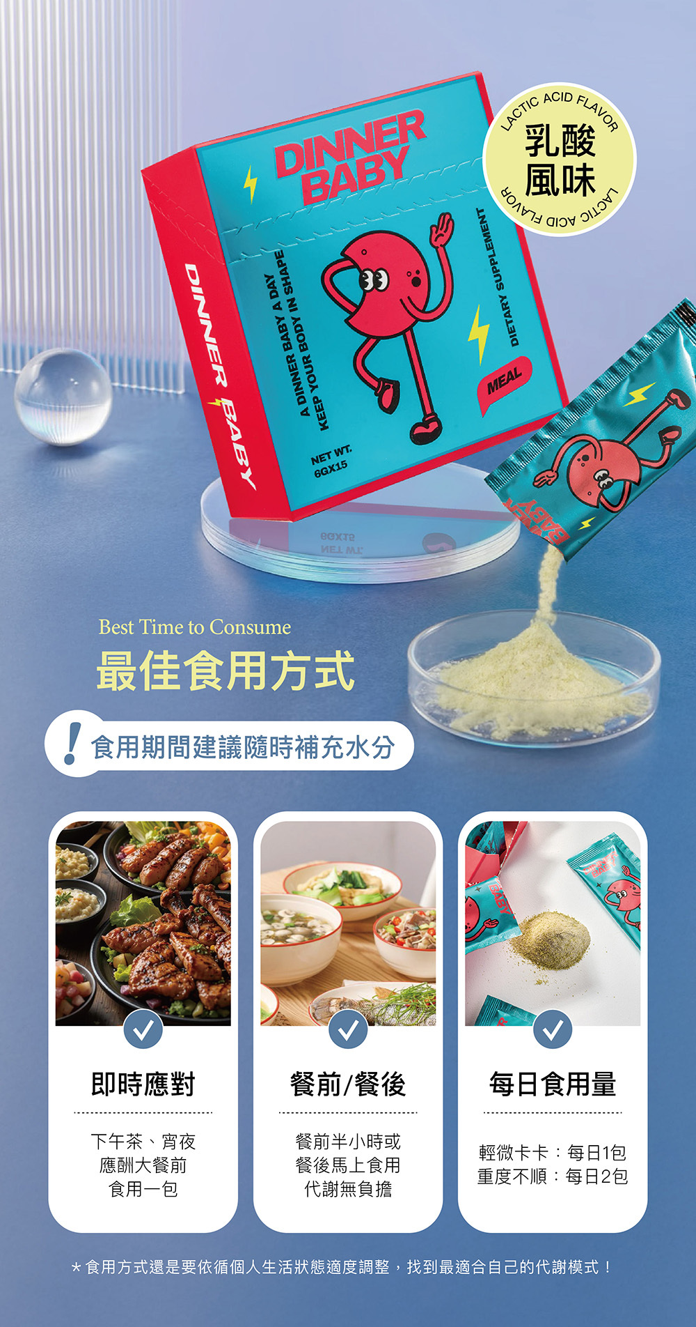 飯前半小時食用最佳,可直接食用或搭配溫水