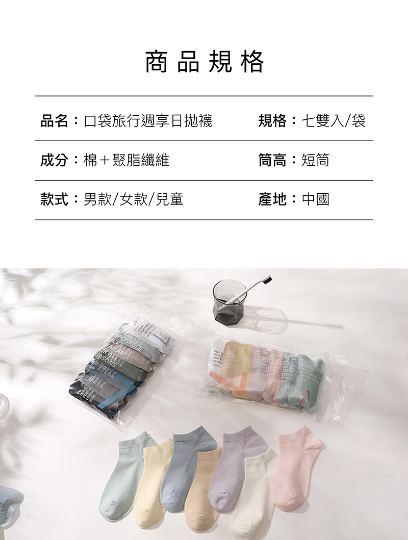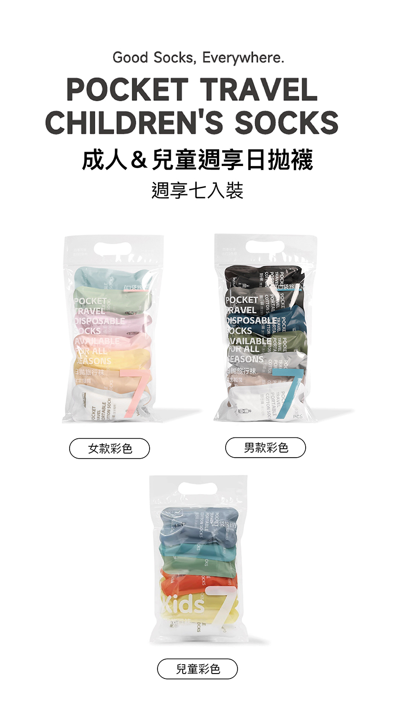 【口袋旅行】周享日拋襪7入裝( 男/兒童)